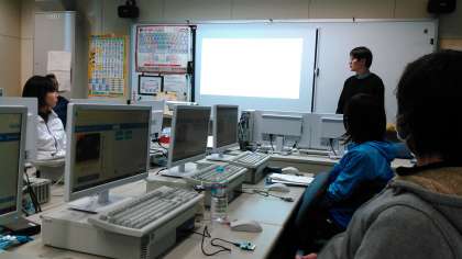 2月14日(木)先週、パソコン教室でプログラミングの研修会を行いました。2020年度から導入する予定ですが、区役所の教育支援担当にご協力いただき開催することができました。