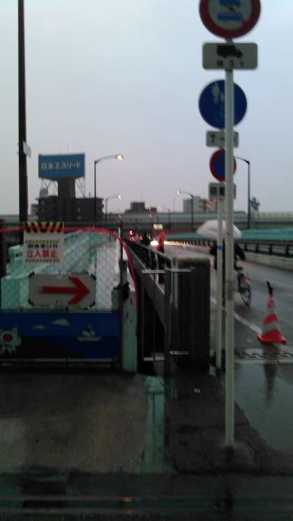 昨日、16:30頃に千船駅南側の千船大橋東側歩道部分で1m程度の陥没事故がありました。本日の登校につきましては、誘導員の指示に従って通行してください。なお、千船大橋は朝7〜9時は車両通行止めになっています。