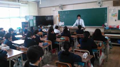 さて、写真は、先日、佃中学校の先生に算数の授業をしてもらったときのものです。