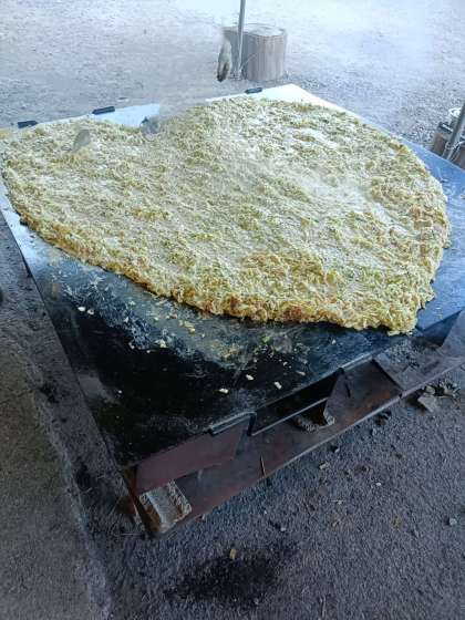 子どもたちは、キャベツを切ったり、粉を混ぜたり、火を起こしたり...役割を決め取り組んでいました。