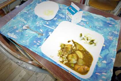 本日の給食献立は、人気のメニュー、カレーライスです。