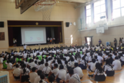 舞台上のスクリーンに映し出されたクイズを楽しんでいました。