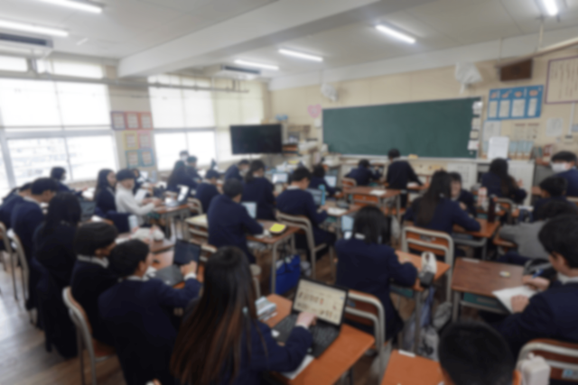 6年生は、フォトフレーム作成のために、パソコンを使用して調べる活動をしています。