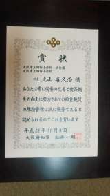 12月5日(月)給食室の衛生管理と栄養の改善に努めたということで大阪府より表彰を...