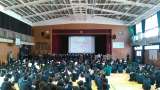 佃南小の校歌と佃西小の校歌を全員で歌いました。どちらの校歌も同じくらいの声の大き...