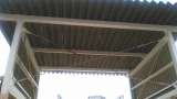 7月13日(月)本館から北館への渡り廊下の屋根を管理作業員が塗装しています。業者...