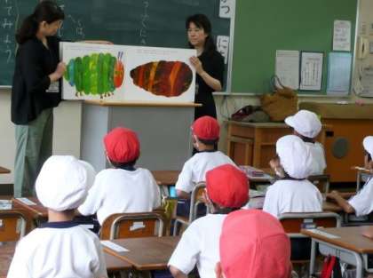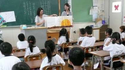 朝の御幣島タイムに、PTA図書館支援活動 『ばおばお』の方に来ていただき、絵本の読み聞かせをしていただきました。今日は、1年生の教室に来ていただき、「はらぺこあおむし」を読んでいただきました。どのクラスでも大型絵本の迫力ある絵を見ながら、お話の世界を楽しんでいました。