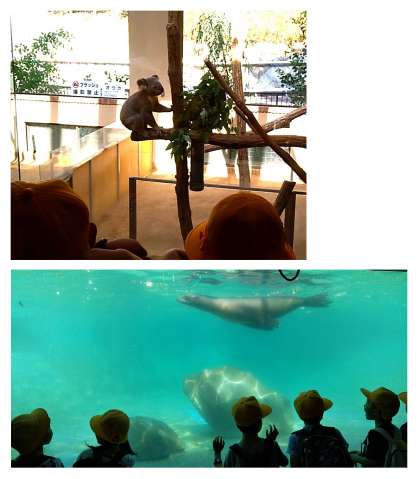 快晴の中、王子動物園へ遠足に行ってきました。10月とは思えないほどの暑さでしたが、パンダやコアラのお食事タイムを、ちょうど見学することができました。また、ペンギンやアシカが水中を気持ちよさそうに泳ぐ様子や、キリンのまつ毛やワニの目の色まで、間近で見学することができました。テレビの画面や写真では伝わらない匂いや迫力を全身で感じることができました。