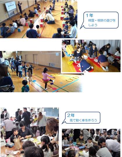 保護者に手伝ってもらって絵を描いたり、工作をしたり、また一緒にゲームを楽しんだりと、いつもの授業と違うほのぼのとした雰囲気の中で、子どもたちの生き生きとした様子が見られました。