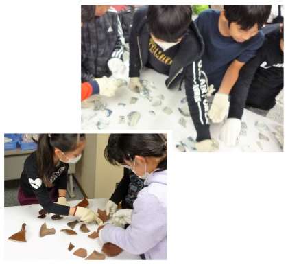 土器接合では、目の前の土器の破片をパズルのように組み合わせを考えるのですが、なかなか思うように合いませんでした。やっと学術員の方にOKをもらった時は、笑顔がこぼれていました。