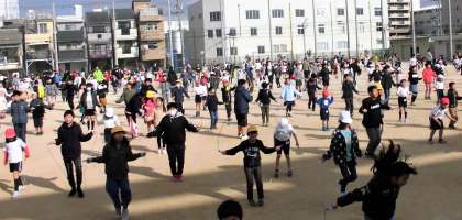 子どもたちは、何回跳んだか競い合いながら、寒さを吹き飛ばしています。