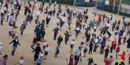 1月から2月にかけて毎週火曜日と水曜日の15分間休憩に行っています。2時間目が終わると、全学年の児童が運動場に集合。短なわでいろいろな技に挑戦します。たてわり班で集まって練習するので、高学年が見本にり、学年をこえて楽しく練習しています。