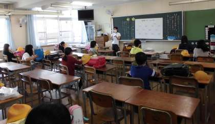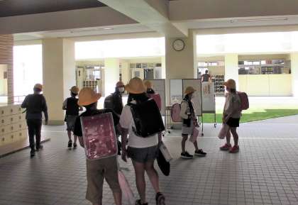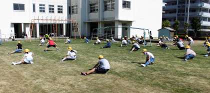 新担任の先生との対面の後、健康観察、学習課題の点検や説明を受けました。2時間目は、芝生広場で軽く運動をしたり遊んだりしました。
