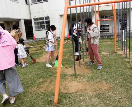 午前10時に、児童・保護者・PTA役員・地域の方・大阪はなみずきライオンズクラブの方・本校職員が集まり、芝生広場の種まきにとりかかりました。また、種まき後の砂かけの作業もソフトボールクラブの方の協力を得て無事終了しました。お手伝いいただきました皆様、ご協力ありがとうございました。