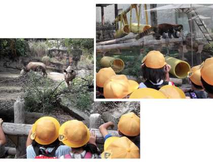 お天気に恵まれ、日陰は涼しく過ごしやすい気候の中、遠足に行くことができました。 友達と行く動物園は楽しく、みんなとても良い表情で、ゆっくり動物を見てまわりました。初めての校外学習でしたが、動物の見学、歩行の仕方、電車の中のマナーなど、きちんとマナーを守って行動することができていました。