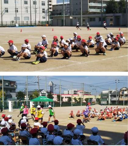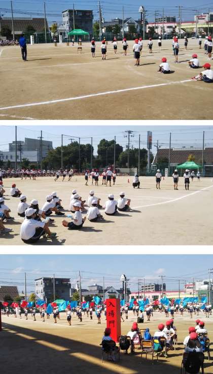 秋晴れの青空の下、25日(日)の「小運動会」の予行を実施しました。