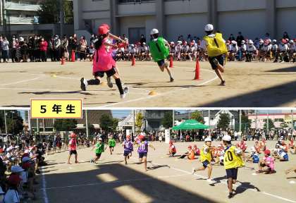 前半の部では、1年生・3年生・5年生の元気一杯の競技・演技を見ることができました。