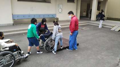 大阪市立心身障害者リハビリテーションセンターのご協力により、5年生で車いす体験を実施しました。