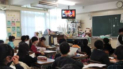 迫力ある演奏に 各教室では食い入るように画面を見つめる子どもたちの姿がありました。