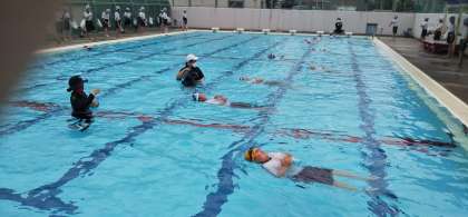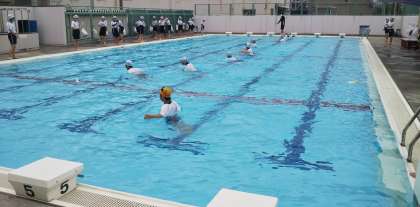 着衣泳は、衣服を着たまま水に落ちた場合の対処法を学ぶものです。