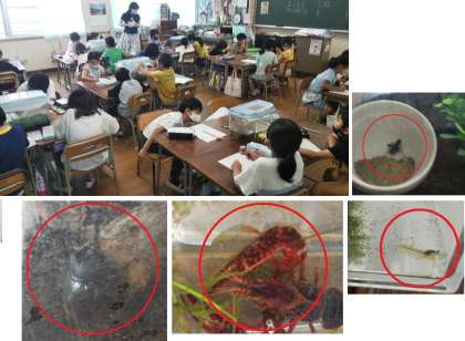 2年生活科では、「ヌマエビ」「コオロギ」「ザリガニ」「カブトムシ」の観察を行いました。食い入るように観察する子どもたちの姿がありました。