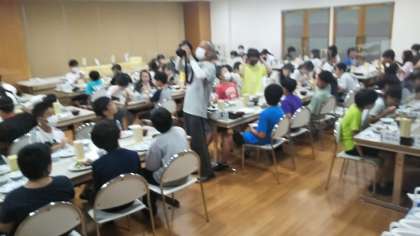その後、予定より遅れて、五年生は18時より、六年生は19時より晩ごはんとなりました。