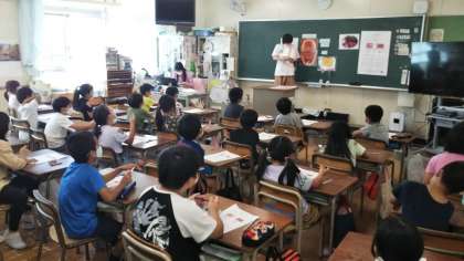2年生では、歯科衛生士さんに来校いただき、歯みがき指導を行いました。
