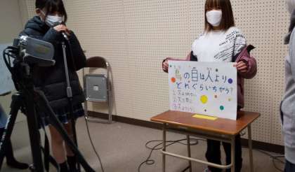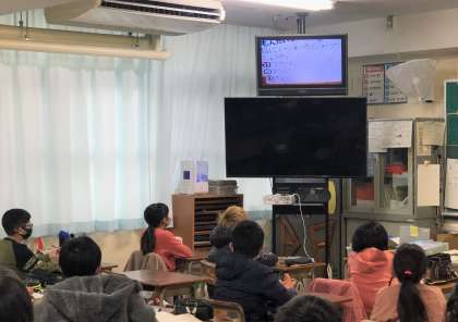 メディアを使う時間が増えたことによる視力低下の問題を踏まえ、委員会の児童が、「目に良いこと・良くないこと」「目に良い食べ物」「テレビやゲームなどを使うときの距離」などをそれぞれ調べ、分かったことをクイズ形式で発表しました。