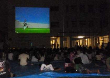 恒例の芝生広場での映画会は、途中からの雨で、残念ながら予定より早く切り上げましたが、「トムとジェリー」の映画に子どもたちの歓声が沸き、心和むひと時を過ごすことができたのではと思います。