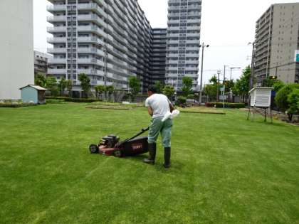 【写真1枚目】管理作業員さん、芝刈り中