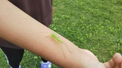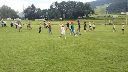 キャンプファイアに登場した児童に大人気のキャラクター、野菜マンと野菜ガールも参加し、盛り上がっています。