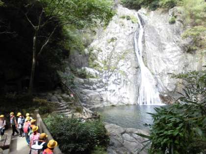 お弁当を食べた後に下山し、途中にある「布引きの滝」を見ました。勢いのある滝を見て「おー!」と、子どもたちは感動していました。