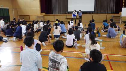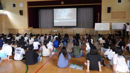 学校は税金約13億円で建てられるそうです。1億円って…?実際に模擬紙幣の一億円を見せていただきました。みんなとても興味津々で触らせてもらいました。「すごいな〜」「欲しいな〜」という声が聞こえてきました。