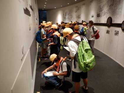 大阪城公園では、大阪大空襲の戦跡をめぐるフィールドワークを行いました。ピース大阪では、戦争時代の生活や空襲による被害について学びました。真剣にメモを取る姿も見られ、戦争の歴史や悲惨さを改めて知ることができました。修学旅行につながる平和学習の一歩となりました。
