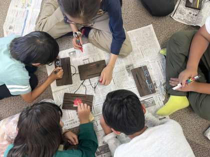 昨日、きれいに磨いた焼き板に絵を描きました。