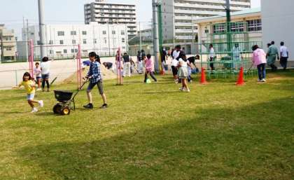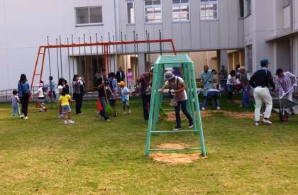 午前10時に、児童・保護者・職員・PTA役員・地域関係者等が集まり、芝生広場の種まきにとりかかりました。また、種まき後の砂かけにPTAソフトボールクラブの方々の協力も得て無事終了しました。お手伝いいただきました皆様、ご協力ありがとうございました。