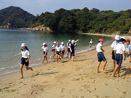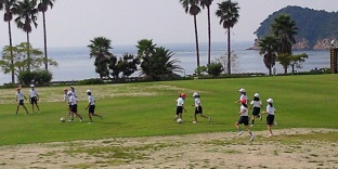 活動は、カッター体験、サッカー、テニス、浜遊びの4つです。4つのグループに分かれ順々に回っていきました。