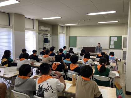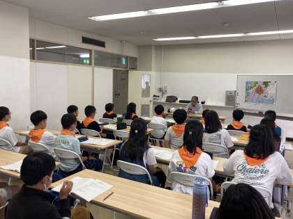 お昼ご飯のお弁当を食べた後に、被爆体験の話をしっかり聞きました。聞いた内容をしおりに書き留めていました。
