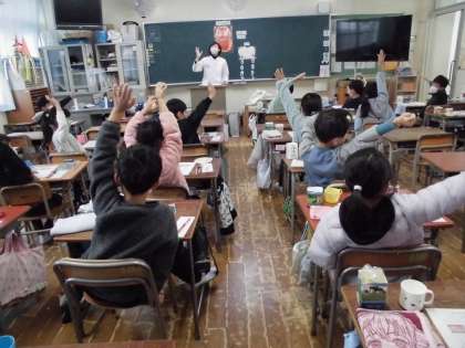 みがきにくい歯は鉛筆の持ち方で一本一本丁寧にみがくこと、歯と歯の間は歯ブラシを縦にしてみがくことなど、とてもわかりやすく教えてくださいました。子どもたちからは、「虫歯にならないように歯みがきをがんばりたい」「これからは、おかしやジュースを減らしてつるつるになるまで絶対みがこうと思う」などの感想が聞かれました。