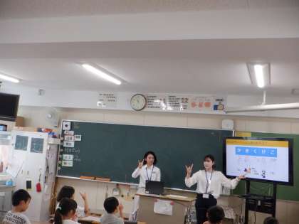 9月30日は、日生ニュークリエーションの方々にお越しいただき、手話について学習しました。自己紹介や気持ちの表し方、「おはようございます」「ありがとう」などのあいさつを手話で表現しました。子どもたちから「楽しかった。」「困っている人がいたら助けてあげたい。」などの感想が出ていました。充実した時間になりました。