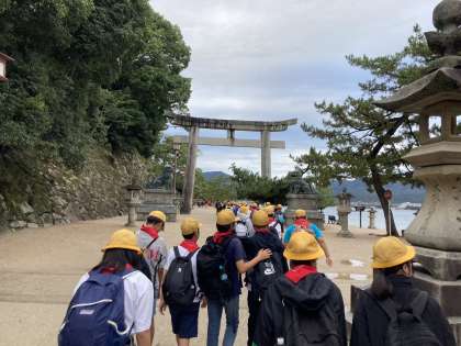 厳島神社に到着し、大鳥居を間近に見ることができました!