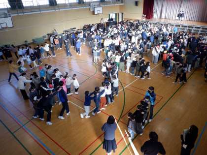 2月6日の児童集会では、じゃんけん列車をしました。