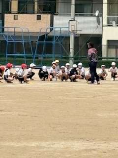 朝降っていた雨もすっかりやみ、運動場では4年生の体育の学習が行われています。