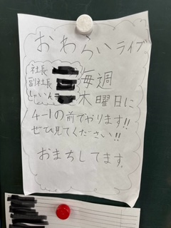 クラスを楽しくするための係が決まり、それぞれの係でカードを作ります。早速、企画し、運営が始まっている『わらいの場 みてじま店』は毎週木曜日の昼休み、お笑いライブが決まっています。早速明日、開催です。楽しみですね。