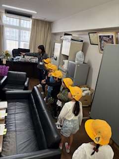 学校にあるいろいろな部屋を探検します。『来たことある』『初めてみた』など重い思いの感想をお伝えます。クラスごとに回っていきます。