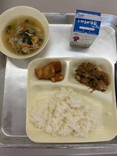 今日の献立は ごはん ホイコウロー 中華スープ あつあげのピリ辛じょうゆかけ 牛乳
