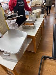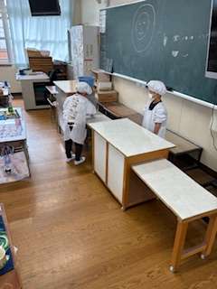 準備前の一年生の教室に行くと静かに運ばれてくるのを待つ姿がこの1か月での成長が見られました。