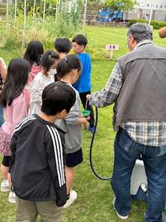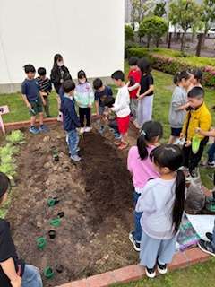 ?ひまわりとほうせんかを各班でポットに種を植えていきます。どのように成長していくのか楽しみです。