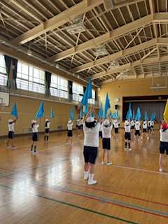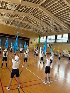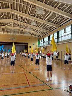 運動会に向けての学習が本格的に始まっています。6年生はフラッグを使った表現運動に取り組んでいます。完成が楽しみです。