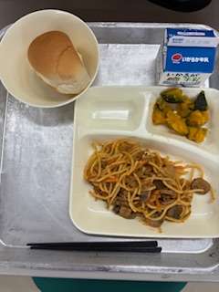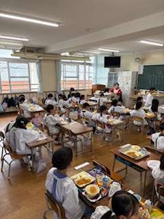 今日は1年3組で給食をしました。